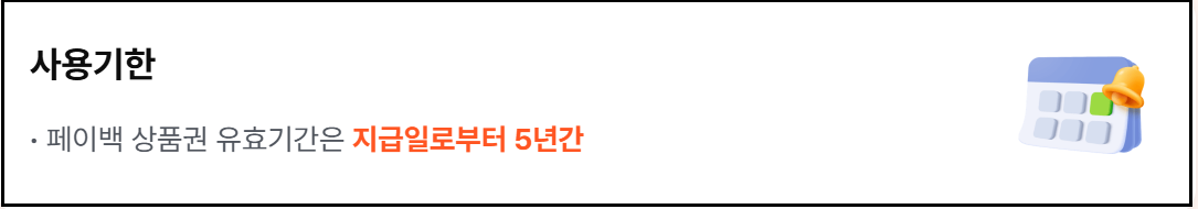 전통시장, 상점가, 소규모 매장에서 자유롭게 활용 가능하고, 사용 기한은 지급일로부터 5년이므로 충분한 여유가 있습니다.