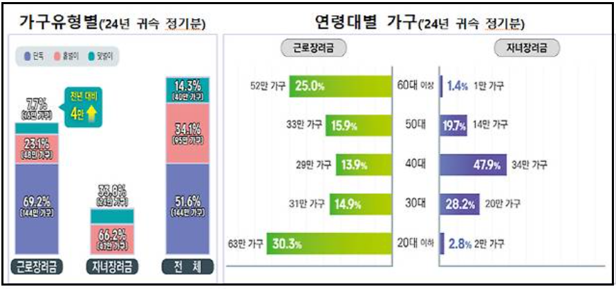 특히 40대 이상의 자녀 양육 가구나 소득이 적은 홑벌이 가구에서 혜택을 많이 받고 있습니다.