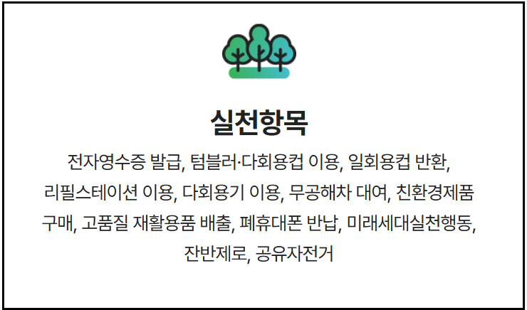 우리가 이미 하고 있는 습관을 조금만 친환경적으로 바꾸면 매달 포인트가 쌓이는 구조입니다.