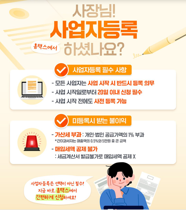 사업자등록은 국세청에 사업을 공식적으로 알리고 세법상의 권리와 의무를 갖는 과정입니다.