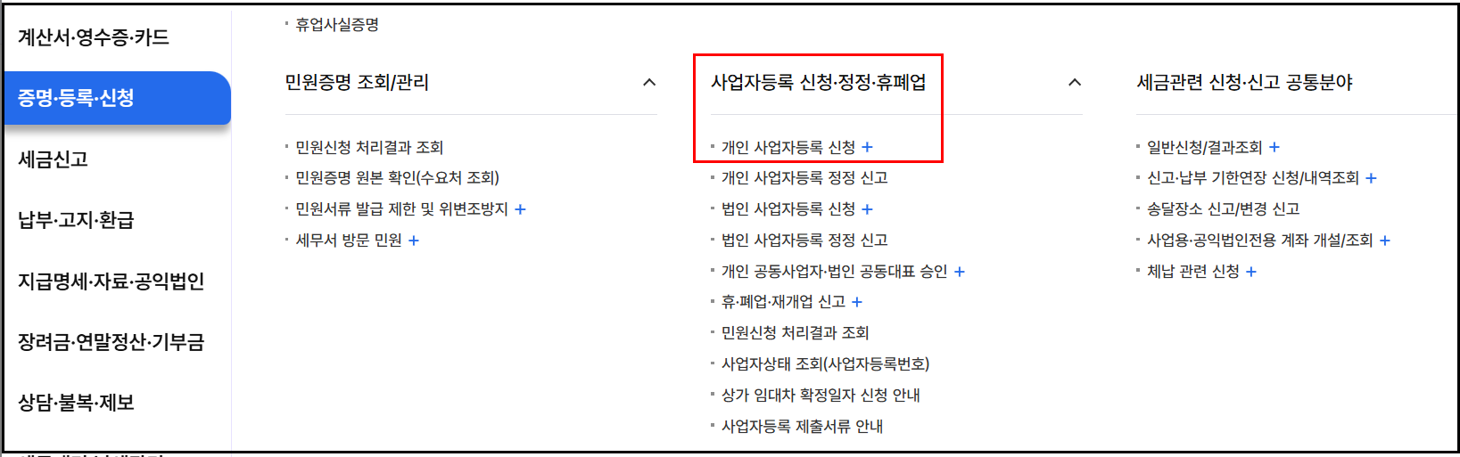 세무서 방문 신청