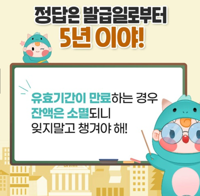 - 카드 유효기간(5년) 종료 시 잔액은 자동 소멸됩니다.