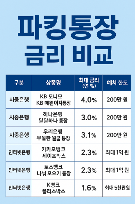 2025년 주요 은행권·인터넷은행 파킹통장 금리 비교