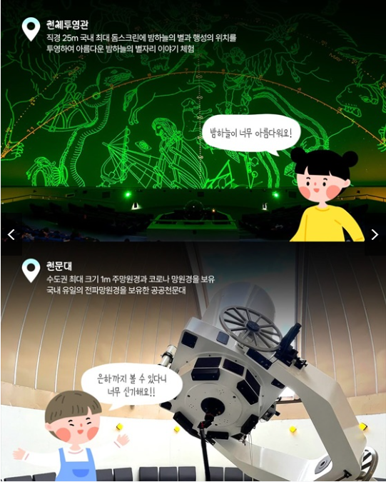 이곳은 아이들에게는 과학의 재미를 알려주고, 어른들에게는 흥미로운 우주와 천문 체험을 선사하는 특별한 공간입니다.