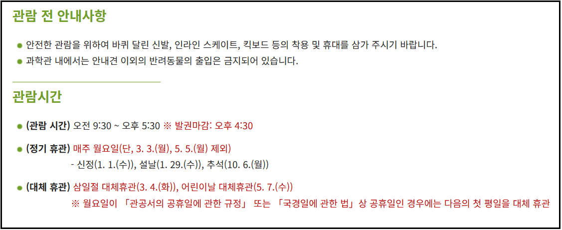 - 주소: 경기도 과천시 상하벌로 110 국립과천과학관