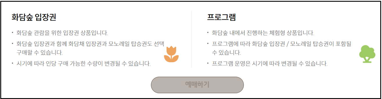 예약은 화담숲 공식 홈페이지에서 가능하며, 입장권과 함께 모노레일, 전시공간 화담채 관람권까지 한 번에 예매할 수 있습니다.