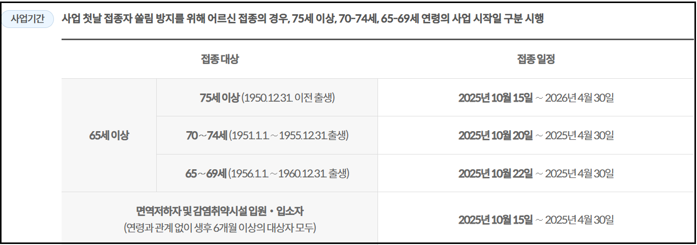 접종 시행 기간: 2025년 10월 ~ 2026년 4월 30일까지