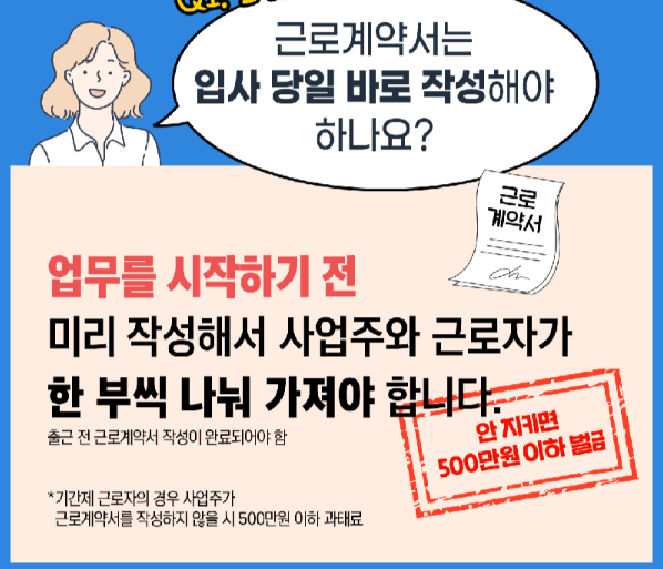 사업장에서 근로자를 채용할 때 가장 기본적이면서도 반드시 지켜야 할 절차가 바로 근로계약서 작성입니다.