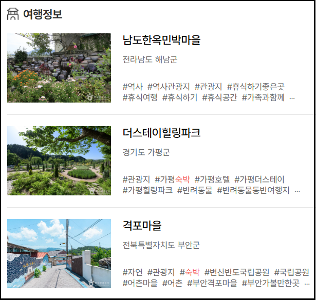 이처럼 누리집은 단순히 여행지를 소개하는 수준을 넘어 여행 전 과정을 지원하는 종합 플랫폼입니다.