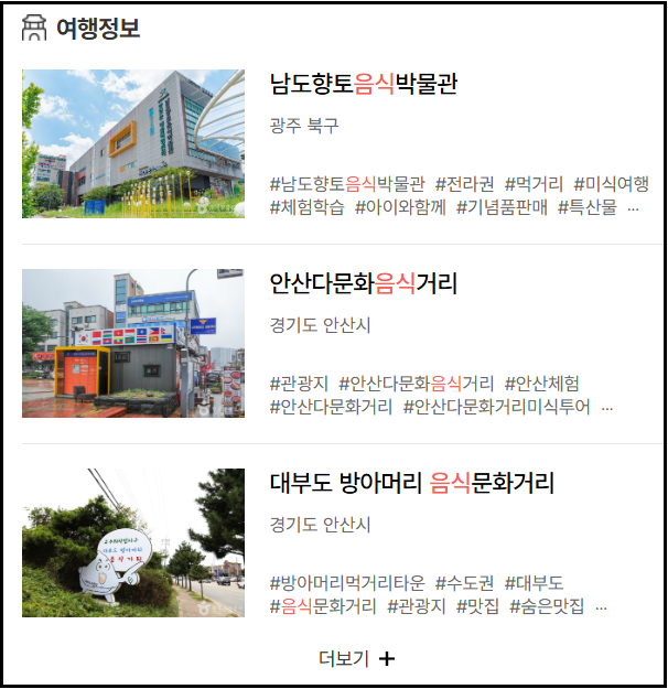 여행지의 볼거리뿐 아니라 먹거리와 숙박 정보도 중요한 요소입니다.