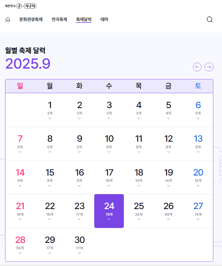 하지만 누리집에서는 지역별·월별·테마별로 정리된 행사 목록을 제공해 여행 시기를 맞추는 데 유리합니다.