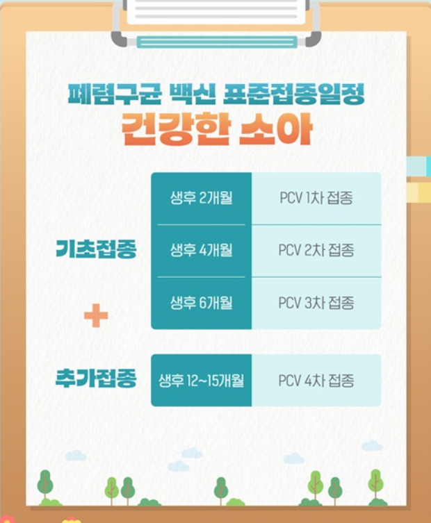 - 생후 12~15개월: PCV 4차(추가 접종)