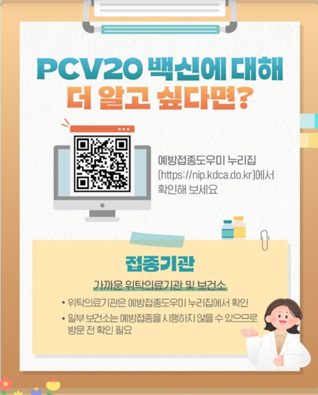 가까운 접종 기관은 예방접종도우미 누리집이나 앱에서 확인할 수 있으며, 특히 PCV20처럼 새롭게 도입된 백신은 병원마다 취급 여부가 다를 수 있으니 사전에 문의하는 것이 좋습니다.